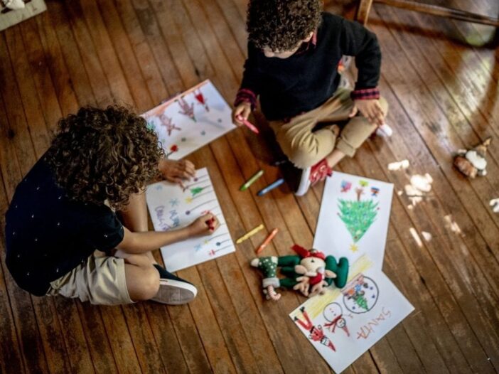On Christmas, decorations from homes to churches are worth seeing. You can get your child to make such a poster in which Santa's gift socks and decorative lights of different designs are made. Not only will everyone like this kind of drawing in school, but you can also frame it and hang it at home.