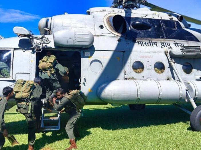 IAF helicopters undertook a hybrid rescue mission to extricate stranded passengers from a restricted zone.