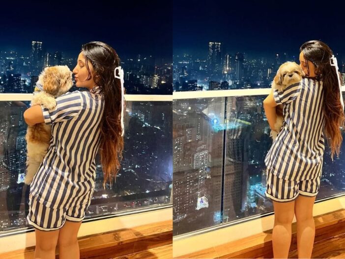 Ashnoor has shared a photo of herself hugging her pet dog, this photo is from the balcony of her house. With which he has written that peace after a difficult storm.