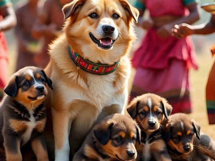 Relatives of the dog’s owner definitely came to this party. In fact the entire village also enjoyed the feast. According to the information, Sridevi, the pet dog of Rambabu Soni, resident of Vidokhar Purai village, had given birth to five puppies. In this happiness, Rambabu Soni organized the twelve rituals with great pomp. Then extended hospitality to the neighbors and relatives.