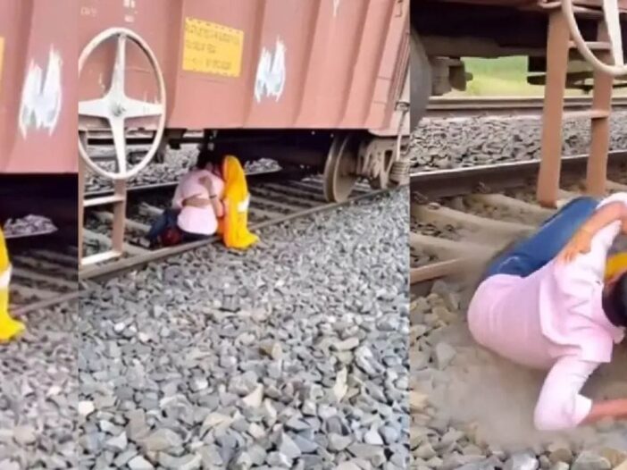 In the world of social media, something or the other is seen every day, which becomes difficult to believe. Many times such videos come out which take people’s surprise to a new level. Recently, one such video has gone viral, which has created a storm on the internet. In this video, a young man and a girl are seen romancing under a goods train parked on the railway track. At the end of the clip it becomes clear how risky his move was. After seeing this, people’s breath stopped.