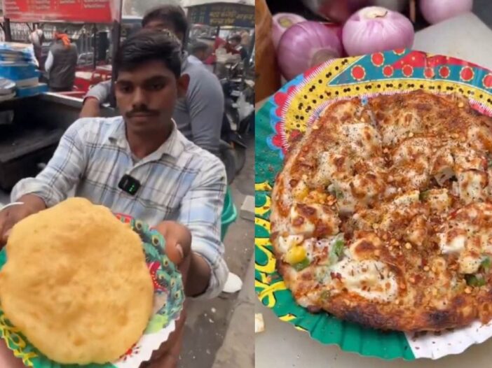 Some people also do a lot of experiments related to food and sometimes they make such food combinations which surprise people. You must have seen many such videos on social media, in which people are seen making various kinds of strange things. Sometimes someone is seen eating vada pav mixed with ice cream and someone is seen making Maggi tea. Video of one such strange food combination these days social media But it is becoming very viral, seeing which people are shaking their heads. Actually, in this video a guy is seen making Bhature pizza using desi jugaad.