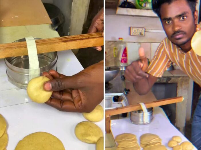 In the video you will see that the young man has tied a steel tiffin firmly under a long wooden plank. After this, he places the dough ball under the tiffin and presses the wooden handle hard, due to which the dough takes the shape of a round puri in a few seconds due to the pressure of the tiffin. Also read: Viral Video: The bride’s entry was fine, but the cameraman’s ‘bang’ stole the show! Watch this viral video