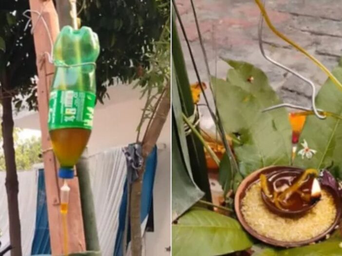 It is shown in the video that such a unique arrangement has been made for Deepak that the viewer is left wondering. Just as glucose is given to patients through a drip in hospitals, similarly this lamp has been given a drip of oil. The oil filled in the bottle slowly drips into the lamp through the pipe. In this way the question of running out of oil in the lamp does not arise. Whoever came up with this idea, his creativity has to be appreciated.