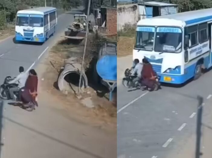 This incident is being reported from an area of Haryana. On the afternoon of 18 November, the CCTV camera installed at the intersection recorded the entire accident. As soon as the video surfaced, serious questions started being raised on traffic safety. At first it seemed that the bus driver hit the bike due to his speed and carelessness, but after watching the footage carefully, many people believed that the bus driver was not at fault.