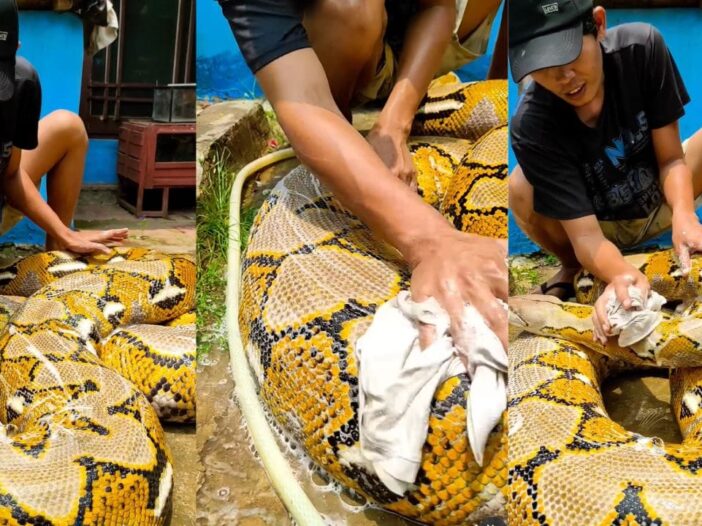 In the video you can see how the guy is applying soap to the python with the help of a cloth. Looking at his long, heavy and shiny body, it can be guessed that he is several feet tall and very strong, but the surprising thing is that he remains completely calm while bathing. He doesn’t even try to attack the guy, while he grabs hold of his mouth and keeps applying soap near his neck. This scene is as fun to watch as it is exciting. It is natural for anyone’s heartbeat to increase after watching this video.