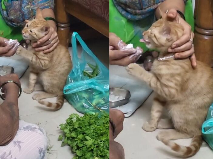 After watching the video, someone said, ‘Don’t force feed your cat. This can cause aspiration pneumonia, which can also lead to death. This may look cute but can be deadly’, then someone said that ‘Indian mothers are like this. Until she feeds her children, she doesn’t believe.