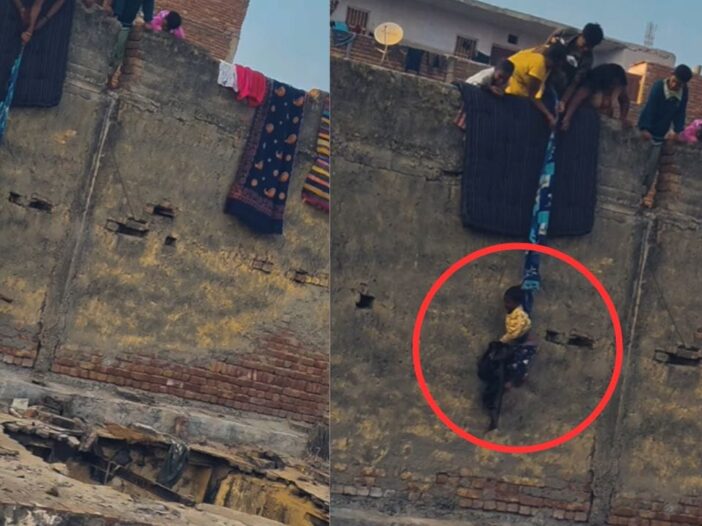 In the video you can see how the child was tied by his parents with the help of a cloth and sent down to the adjacent roof, because one of their clothes had fallen on that roof. Now the child picks up the cloth, but as soon as his parents lift it up, it suddenly hangs upside down. Although somehow they pulled him up, it was a very dangerous sight. An accident could happen to the child because of a single piece of clothing and in such a situation the parents would have to repent later. Therefore, it is important that such risks should never be taken with children.