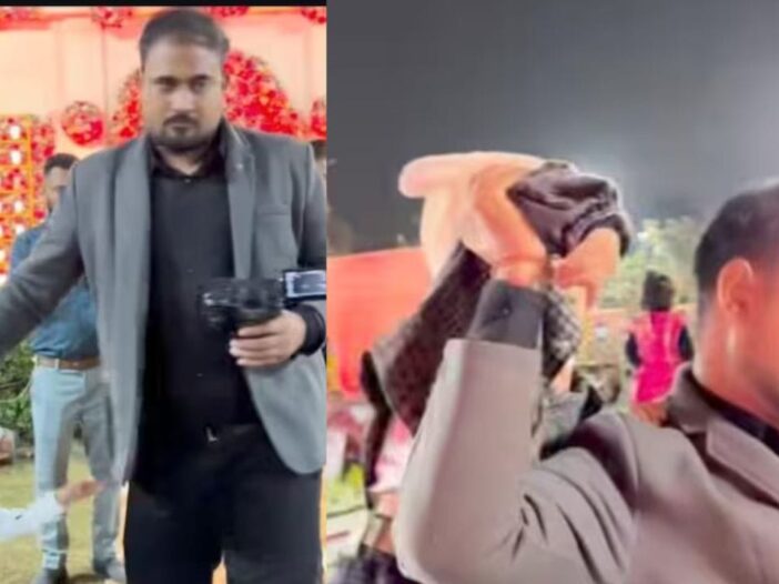 It can be clearly seen in the video that some children who came to the wedding keep roaming around the camera and stage again and again. As soon as a child tries to enter the frame, the photographer quickly catches him. Sometimes he lifts a child with one hand and places him aside, and sometimes he picks up someone in his lap and makes him sit behind. Not only this, even during the group photo of the guests, one of his fellow cameramen stands on the stage and keeps signaling the children to get down so that the pictures can be clear and organized.