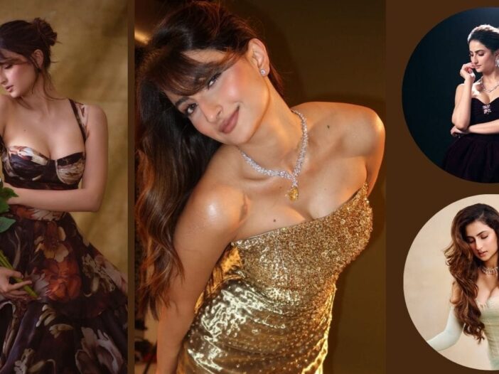 This look of Palak Tiwari is flawless and pretty. She is wearing a deep colored frill gown with a voluminous skirt, the upper side of the dress has pleated corset detailing. Along with this, big floral print, structured bodice which gives a Disney touch to her look. This outfit is a perfect combination of fairytale grace and modern style.